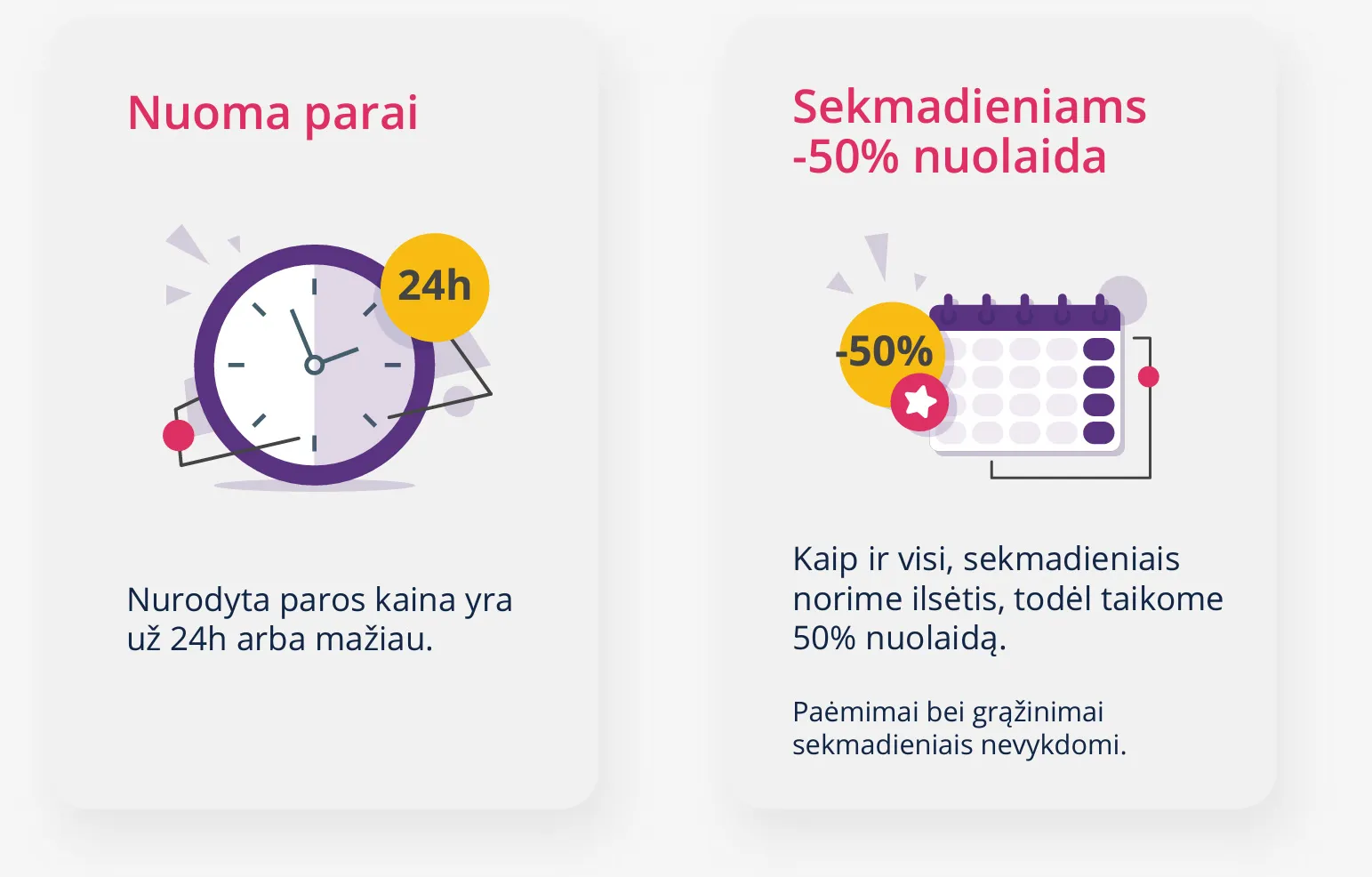 Už visus nuomuojamus daiktus imamas užstatas, jo dydis nurodytas krepšelyje apsipirkimo metu.